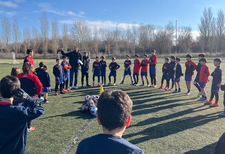 Cada sesión está diseñada por entrenadores titulados con experiencia en fútbol base. Aplicamos una metodología moderna, con entrenamientos adaptados por edades y posiciones, trabajo técnico-táctico y sesiones específicas para porteros, buscando el desarrollo integral del jugador.