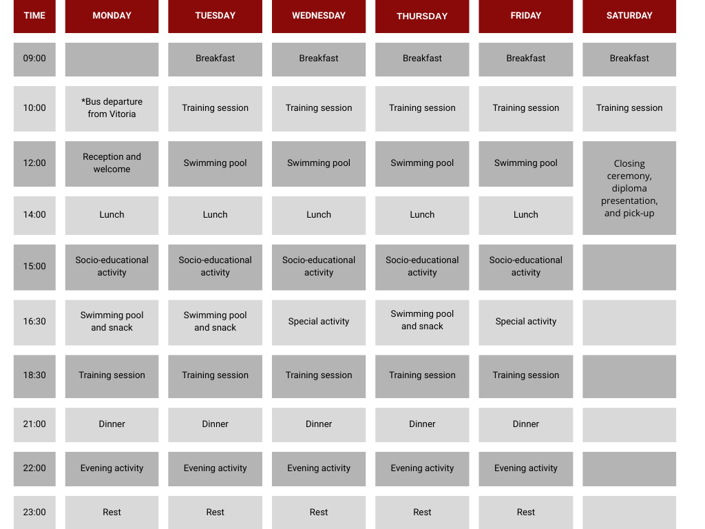 * Round-trip bus transport from Vitoria will be available for those who require it (additional cost).