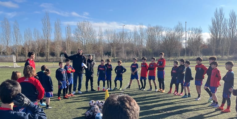 Cada sesión está diseñada por entrenadores titulados con experiencia en fútbol base. Aplicamos una metodología moderna, con entrenamientos adaptados por edades y posiciones, trabajo técnico-táctico y sesiones específicas para porteros, buscando el desarrollo integral del jugador.